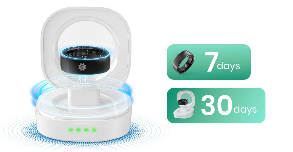 The Smalth Charging Case extends your ring’s 7-day battery life by an additional 30 days, keeping your health tracking uninterrupted. Crafted from durable materials with a smooth finish, the case is lightweight, pocket-friendly, and easy to carry — ensuring your ring is always ready, anytime, anywhere.