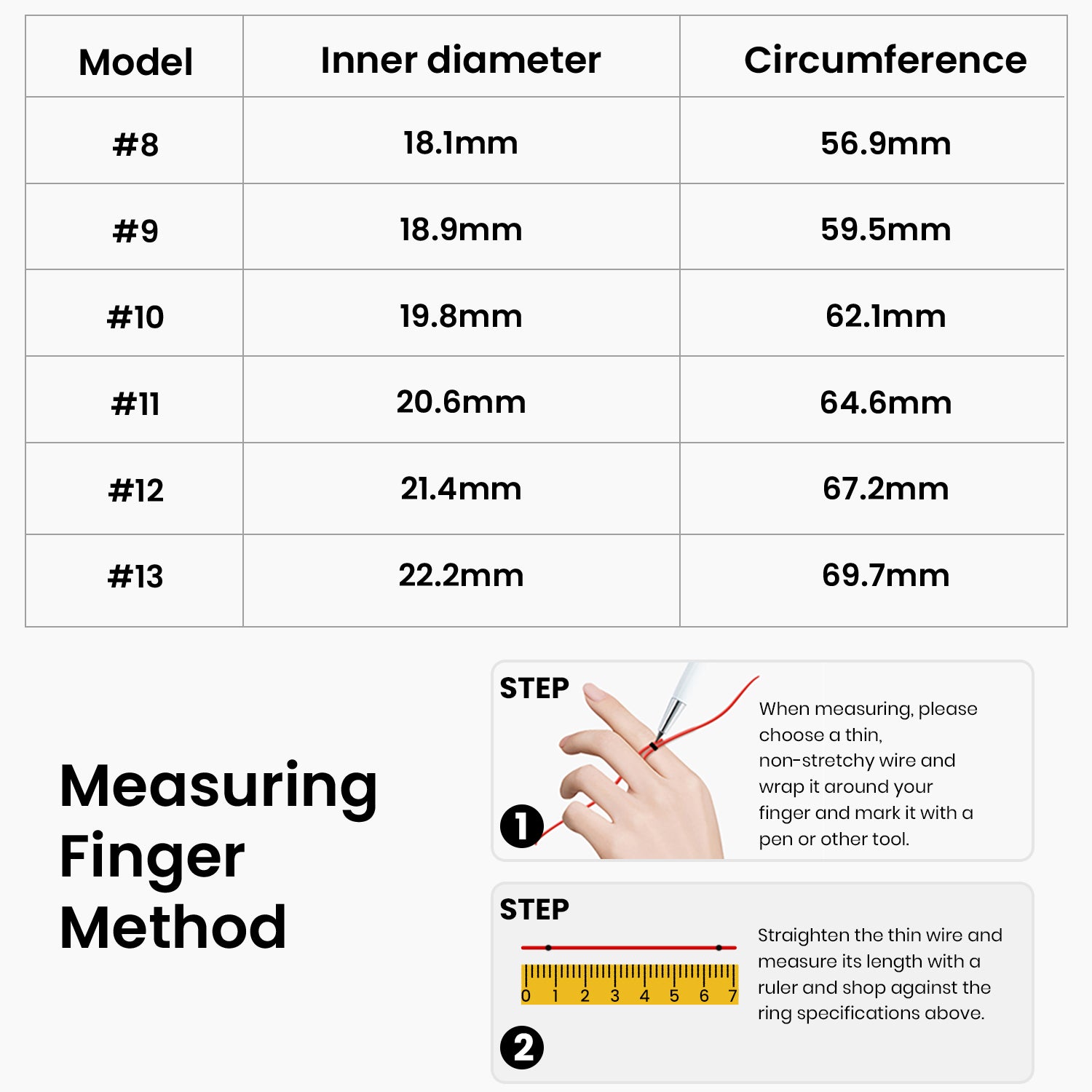 We strongly encourage that you refer to traditional ring sizes or take measurements at a jewelry store nearby to find your perfect fit.